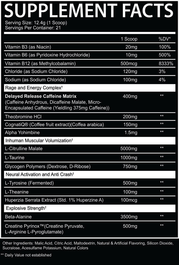 AFTERDARK INHUMAN pre-workout is like a jolt of lightning to the system, a surge of energy and focus that propels you forward with unstoppable momentum. It's a portal to a realm of heightened intensity and explosive power, where the barriers between mind and body dissolve and you become a force of nature. But beware, for this power comes at a price, and the darkness that lurks within us all may be unleashed if we are not careful.